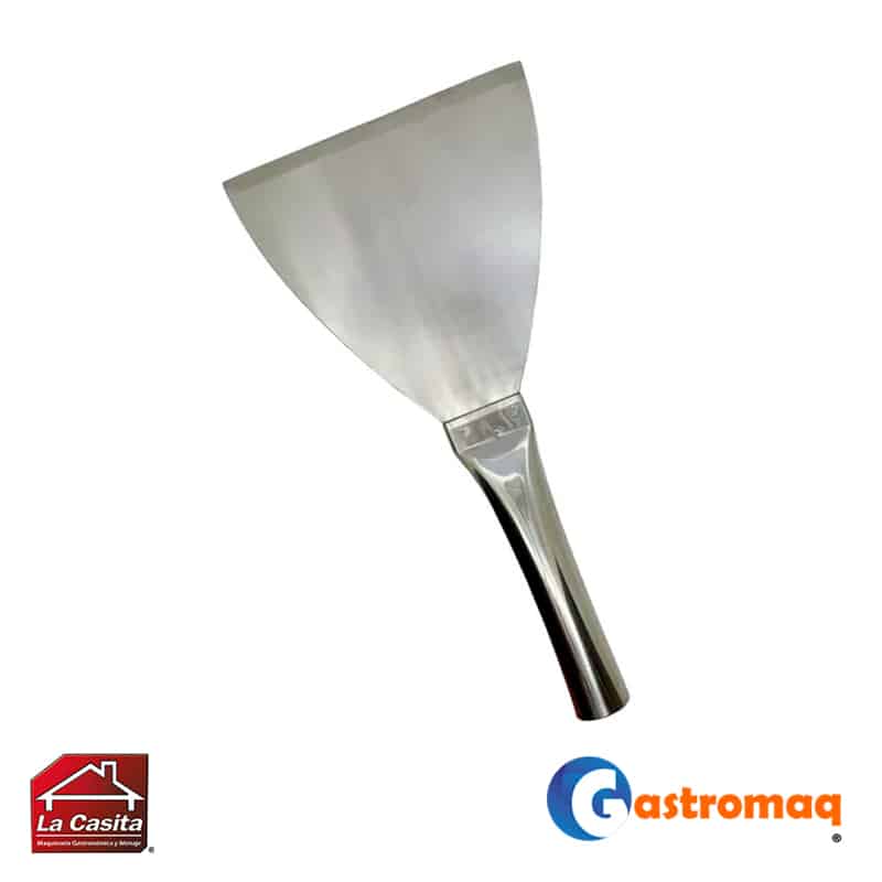 - Esta es una de las herramientas más versátiles en cualquier cocina profesional chilena. La Espátula de 10 cm con mango de acero de la línea Gastromaq es la combinación perfecta de higiene y durabilidad. Al ser “total steel” (completamente de acero), elimina el riesgo de desprendimiento de partículas de plástico o madera, siendo la favorita para auditorías sanitarias estrictas.