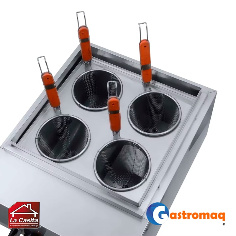 • La Máquina de Cocción de Pastas Eléctrica 4 Canastos Gastromaq, es una solución eficiente y práctica para cocinas profesionales que requieren rapidez y control en la preparación de pastas.