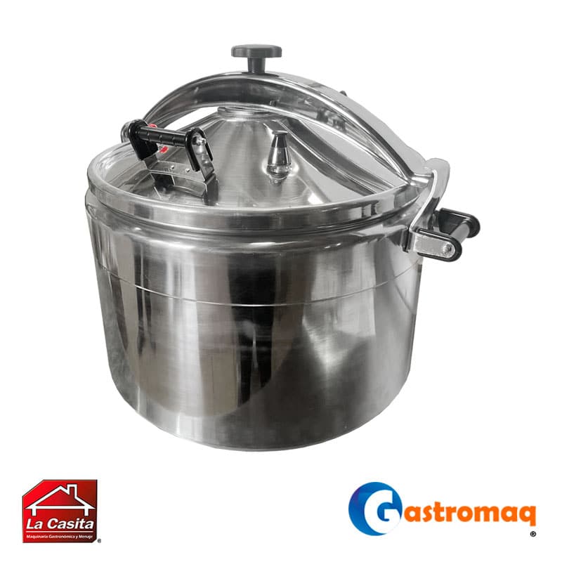 - La Olla a Presión Gastromaq de gran capacidad es ideal para cocinas profesionales que requieren alto rendimiento y eficiencia en la preparación de grandes volúmenes de alimentos.